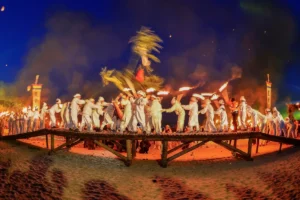 낮에는 형형색색의 건물들을 배경으로 사진을 찍고, 밤에는 은은한 조명 아래 로맨틱한 분위기를 만끽할 수 있습니다. 다양한 기념품 가게와 카페, 레스토랑이 있어 캠핑 중 잠시 들러 산책하며 휴식을 취하기에 좋습니다.